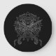 Dragon Twins Mandala White Tattoo in an ancient shield logo is a digital finger painted drawing. White silhouette and gradient shaded pattern.