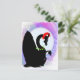A bright and colourful background design with the black silhouette of a Christmas dragon wearing a Christmas hat and a holly wreath. A beautiful holiday card for the dragon lover in your life.