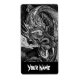A dragon lurks in a cave deep underground. Label with a black and white customizable design for you to personalise with your own text, pictures and ideas. An original ink drawing by Jess Perry.