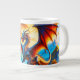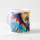 Dragon Over Village Coffee Mug. Detailed illustration of a majestic dragon, vibrant and fiery colour palette, intricate scales with shimmering reflections, powerful wings outstretched, sharp and fierce eyes, epic fantasy scene, epic, mythical creature, high-res, ultra-detailed, fantasy, vibrant tones, detailed scales, intense gaze, professional, dramatic lighting.
