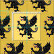 This dragon rampant design in black was inspired by various heraldic black dragons.