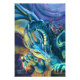 Dragon Rider art is a must have for fantasy and dragon lovers featuring a dramatic painting by Traci Van Wagoner of a blue green dragon in a dramatic flying pose with a wizard rider in red holding a staff high on his back with a child rider behind. Decorate your home or office with a bit of magic.