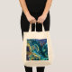 The printing came out very well, better than I had anticipated. The natural color fabric is sturdy with strong seams and comfortable handles. This tote fits easily over my shoulder. As it is filled, the bottom flattens out--very cool! I would buy this product again. This grocery tote holds a lot of groceries! The image quality was very good. The colors were a little darker than I had expected. The darkness may have been due to printing on a natural color fabric rather than on white. The cat design is attractively centered on the tote. The spirit of the design is very lively, just as it appears on the Zazzle website.