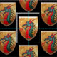 Linda Baysinger Peck’s painting of a green, mediaeval, European dragon, on gold colour shield, with black background.Image © Linda Baysinger Peck All Rights Reserved