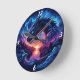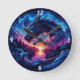 Dragon Silhouetted Against a Vibrant Sunset Round Clock