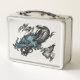 This is a standard metal lunchbox that appears to work just fine. We designed this box ourselves with an uploaded photo and custom text on the front and back. It looks absolutely beautiful except the front of the lunchbox is not centered like it shows in the photo. The print borders don't align with the inset flat part of the box where the preview photo online showed it perfectly centered in there. The back looks nice and centered though.