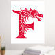 Dragon Styled Letter F, Dragon Alphabet, Monogram Foil Prints