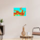A fiery fractal design in red and orange against a blue backdrop, resembling (I think) the tails of mighty dragons. An eye-catching way to brighten your walls with a touch of oriental influence.