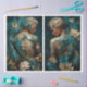 This decoupage tissue paper features an exquisite pairing of a tattooed man and woman, each wrapped in a majestic teal and gold dragon with lush peonies and metallic florals. Designed side by side, this smaller sheet offers two powerful focal images in one—ideal for junk journals, trays, small furniture makeovers, and statement craft panels.