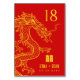 A unique set of table number cards tailored to your dragon and phoenix-themed wedding. They feature a stylised gold dragon against a red backdrop. A symbol for double happiness sits over the names of the happy couple and the date of their special wedding event.