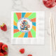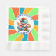 Blue, green, yellow and orange dragon themed boy's birthday party paper napkins. Cute for any little boy who loves dragons! Cartoon dragon holding birthday cake.