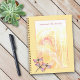 This custom design features a rustic yellow and pink spiral pastel background with three dragonflies in the lower left corner. Fill in the template field with your information, remove the text or click customise to select a font style, colour, and size you prefer. A fun gift idea for any someone who keeps a prefers handwritten notes. The inside pages offer a variety of options including for drawing.