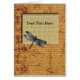 A beautiful blue dragonfly adorns this card. A background of handwriting on a warm tan paper. Enter your own text to make this card uniquely your own.