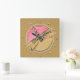 Dragonfly Art in Pink and Gold Square Wall Clock