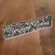 The nameplate looked exactly as pictured, I was very happy with this product! It also arrived promptly after placing my order! I would definitely recommend this product! The printing turned out exactly as I designed it, very pleased!