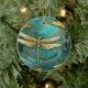 Dragonfly Art Nouveau Art Deco Teal & Gold Insects Ceramic Ornament