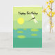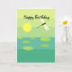 A dragonfly is hovering over a lily pond with a sun in the background. Wonderful card for man or woman, teen or young adult.