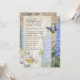 Matching Bridal Shower Invite that is perfect for the nature lover who is planning an outdoor, country, rustic garden style wedding shower theme, has a western barn venue location or simply loves flowers! DESIGN: The background and border artwork for this elegant, formal yet somewhat rustic wedding invitation invite is hand painted by Audrey Jeanne Roberts. The background is an aged, worn, distressed crackle finish style parchment. Beautiful spires of deep blue delphinium flower spires reach for the sky in various hues of blue from sky to periwinkle. A white Matilija poppy flower (often called "fried egg flowers" or "paper flower poppies") was painted in watercolors, live from Audrey Jeanne's own gardens. A Blue Morpho butterfly hovers over a Damselfly Dragonfly that is resting on the poppy. On the reverse side is the same image without the semi-transparent velum look and border. A complete, matching wedding invitation collection set is available for all your wedding, bridal shower or other special occasion and party needs. COLOR SELECTION: This design features natural tans, browns and beige tones with cream, white, light blue and sky blue.