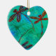 Gorgeous red and gold tinged dragonflies on a turquoise green and blue background flit on this pretty heart shaped decoration. Customise the back to add text, your own image or change the background colour.