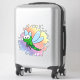 The stick looks amazing. Unfortunately, it would not stick on our suitcase as it was textured. When we found a non-textured (smooth) suitcase, the sticker stuck and looks great. The printing looked awesome.