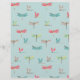 Retro dragonflies over aqua dot stripe print.