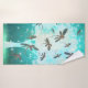 Pretty bronze winged dragonflies flit on a gorgeous turquoise green background with a vibrant glowing tree.