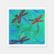 Gorgeous red and blue dragonflies on a mottled turquoise blue and green background. From my original dragonfly artwork. LyndseyArt