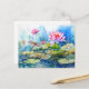 Dragonfly flying through pink water lilies holiday postcard