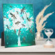 Gorgeous metallic lookiing dragonflies flitting around a beautiful glowing tree set in a turquoise realm.