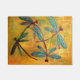 Gorgeous metallic colored dragonflies on a gold washed background. A bright and cheerful mat that will look great at any doorway.