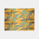Pretty turquoise winged dragonflies on a gold and yellow background.