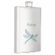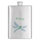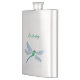 A watercolor of a lovely, blue and green dragonfly adorns this customisable flask!