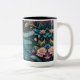 Dragonfly in a floral garden at night Two-Tone coffee mug