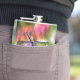 The flask itself is fine. It’s a cheap flask, obviously bought in bulk, however am prepared to overlook that. Given that it is a personalized item, I would have liked to have seen gift boxing instead of the generic packaging. Terrible printing, and/or quality. It’s a cheap, tacky vinyl. It is not cut straight and is also applied in a way that it is overhanging the bottom, causing the glue to catch on items and it will eventually roll and tear, damaging the wrap.