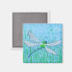 A watercolor of a green and blue dragonfly scanning the grasses for prey adorns this magnet!