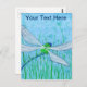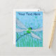 A watercolor of a green and blue dragonfly adorns this postcard!