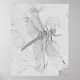 A beautiful dragonfly on daisies image, digitally altered in pencil sketch.