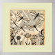 This elegant artwork captures a serene moment as dragonflies gracefully glide above a stylised Art Deco garden. The dragonflies, rendered in soft, muted tones with black accents, float amidst a backdrop of delicate flowers and geometric patterns. The composition blends flowing, organic lines with clean, symmetrical forms, creating a harmonious balance between nature and geometry. The palette of warm beige, peach, and black evokes a nostalgic, timeless atmosphere, drawing inspiration from classic Art Deco motifs. This piece invites viewers to experience the tranquil beauty and graceful simplicity of nature through a vintage lens.