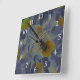 This unique clock features a photograph of a dragonfly on a bunch of daisies, that has been given a unique digital treatment.