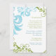 COLOR PALETTE: aqua blue, medium sky blue, mint green, emerald green. DESIGN COLLECTION: Matching Save the Date Annoucement, Engagement announcement cards. This wedding invitation set is created from original water colour illustrations by Audrey Jeanne Roberts. Delicate and modern contemporary leaf swirl scroll patterns in blue and green dance around the invitation with a pair of beautifully detailed dragonflies. There is an elegant, hand calligraphy font Ampersand with the bride and groom's name and wedding date on the front. The reverse side has the hand painted swirls that flourish your invitation text. This is a two-sided wedding invitation.