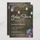 Rustic Wood Mason Jar Twinkle Lights Baby Shower Invitation with colourful dragonflies.