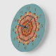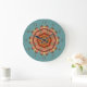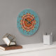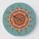 This clock features a circular mandala design created from a photograph of the wing of a Pennant Dragonfly. Shown on a customizable turquoise background, there are delicate hues of pink, gold, terracotta and yellow. If you'd prefer our clock without numbers, you can clear them under "personalize it".