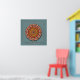An abstract, mandala design created from the colors and patterns in the wings of a Pennant Dragonfly in hues of peach, pink, gold, and turquoise. At the center, a tiny Om symbol, which is Buddhist traditions, often symbolizes the essential vibration of the universe. "Om Shanti" is usually translated as "May there be peace".