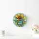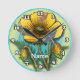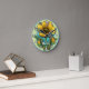 Dragonfly Yellow Poppy Round Clock , t-shirts and gifts by ArtMuvz Illustration. Matching Poppy t-shirt for gardening, flower Gardener apparel.Flower Garden apron.To personalise add your name or add text instead. Customise this poppy clock to make it uniquely yours or to give as a personalised gift
