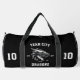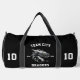 FORGE YOUR TEAM'S LEGACY WITH CUSTOMIZATION! This is where your team's identity comes to life in flames! Personalize your duffle with your team's location, team name, and player number to create a legendary bag that's as unique as your playbook. Whether you're the "Northside Dragons" or "Firestorm Varsity," this personalized sports duffle unites your roster with mythical swagger and unbeatable style.