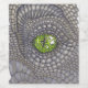 Drawing of a dragon's eye. Artist used black felt tip pens for scales of dragon, and green coloured pencil for eye.