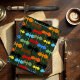 A wing of dragons in the colours of black, brown, red, orange, yellow, blue, and green fly open wings across a deep dark green backdrop soaring upwards. The dragons are drawn in a tribal tattoo style.