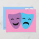 This drama illustration features a purple laughing comedy mask with a smile and a blue sad crying tragedy mask with a frown! This classic theatre masks design is the perfect gift to but for an actor or actress or anyone who loves drama, Shakespeare or performing on the stage!