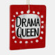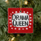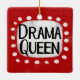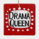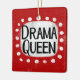 "Drama Queen" is a cute text design in red with black text, along with a white accent shape and white textured whimsical dots surrounding it.