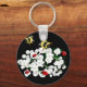 Dramatic Bees ladybugs and white flowers on black Key Ring
